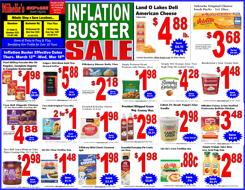 Inflation Buster Ad Only AT Mihelic’s Shop n Saves